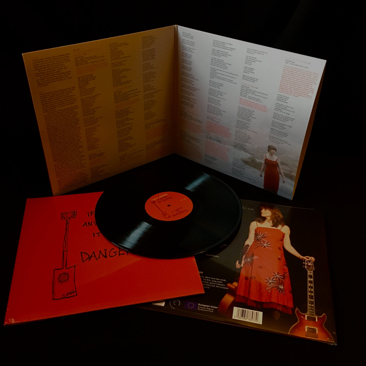 Heavyweight 180g black vinyl LP in a gatefold sleeve with lyrics and background information on the songs, plus a link to download the full album (including a PDF of the 16-page CD booklet) – plus a heavyweight 100% cotton T-shirt screen-printed with Sarah’s original album cover artwork, available in a choice of black on red or red on black, in sizes ranging from Small to XXL.